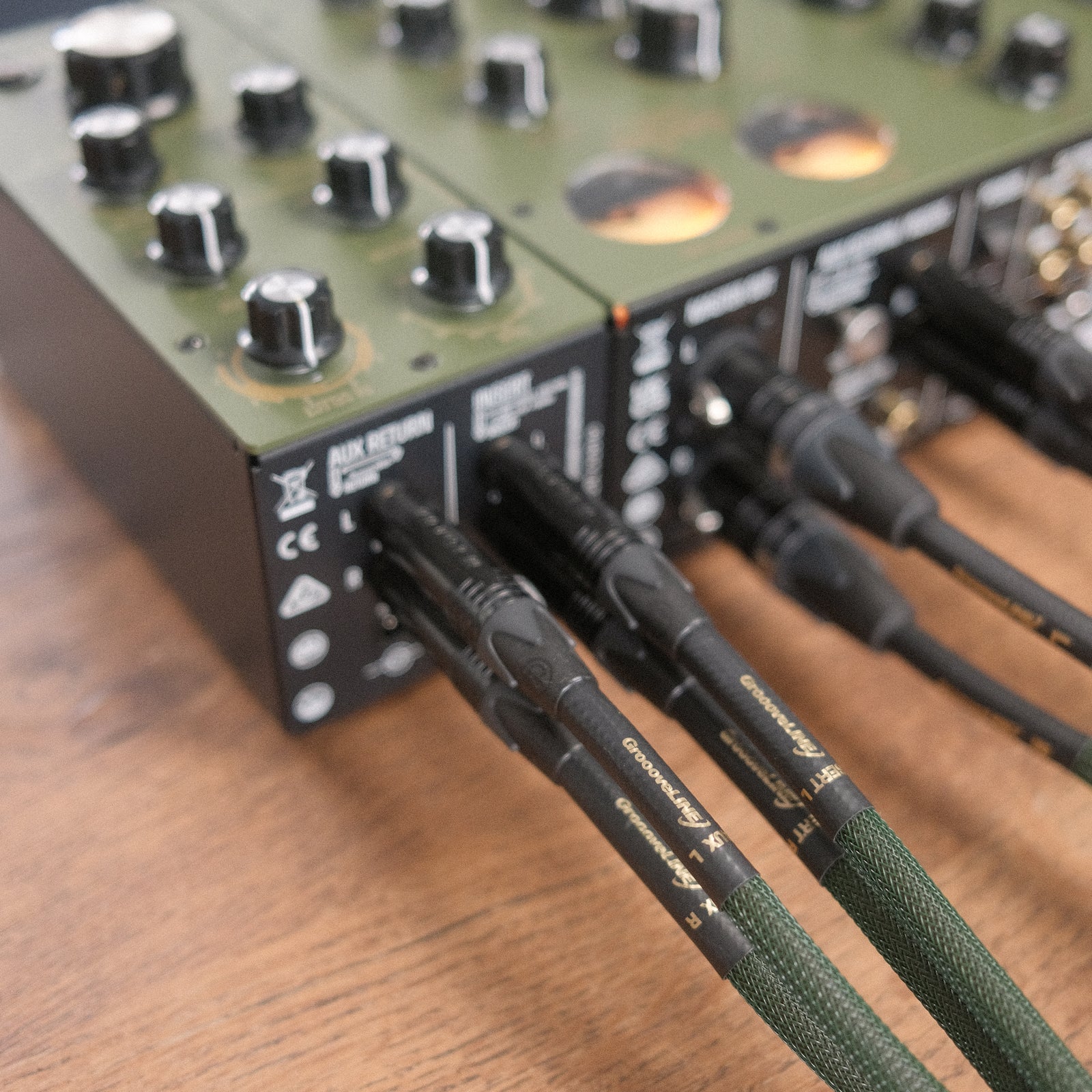 MasterSounds GroooveLINE cables are handmade in England by skilled technicians embellished with the signature forest green braiding and gold GroooveLINE seal.